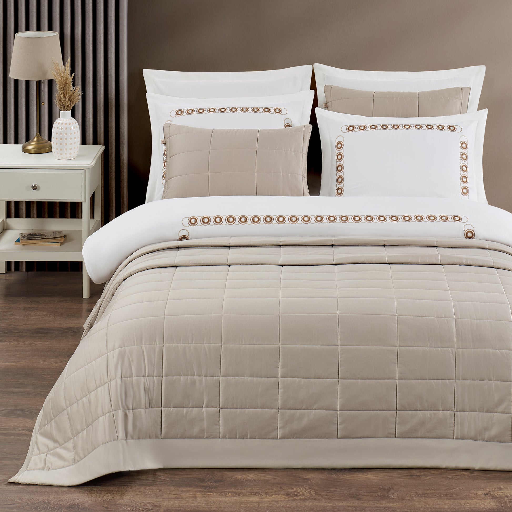 Savio Pamuk Saten Yatak Örtüsü Seti Bej