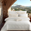 Bu şık çeyiz seti, sadece estetik değil, aynı zamanda uzun ömürlü kullanım ve rahatlık vaat eder. Yumuşak dokusu, uyku kalitenizi yükseltirken, yatak odanızda lüks bir atmosfer yaratır. İster kendiniz için, ister sevdiklerinize hediye olarak tercih edin, her detayıyla büyüleyici bir deneyim sunan bu set, yıllar boyu unutulmaz anılar biriktirmenize yardımcı olacak.