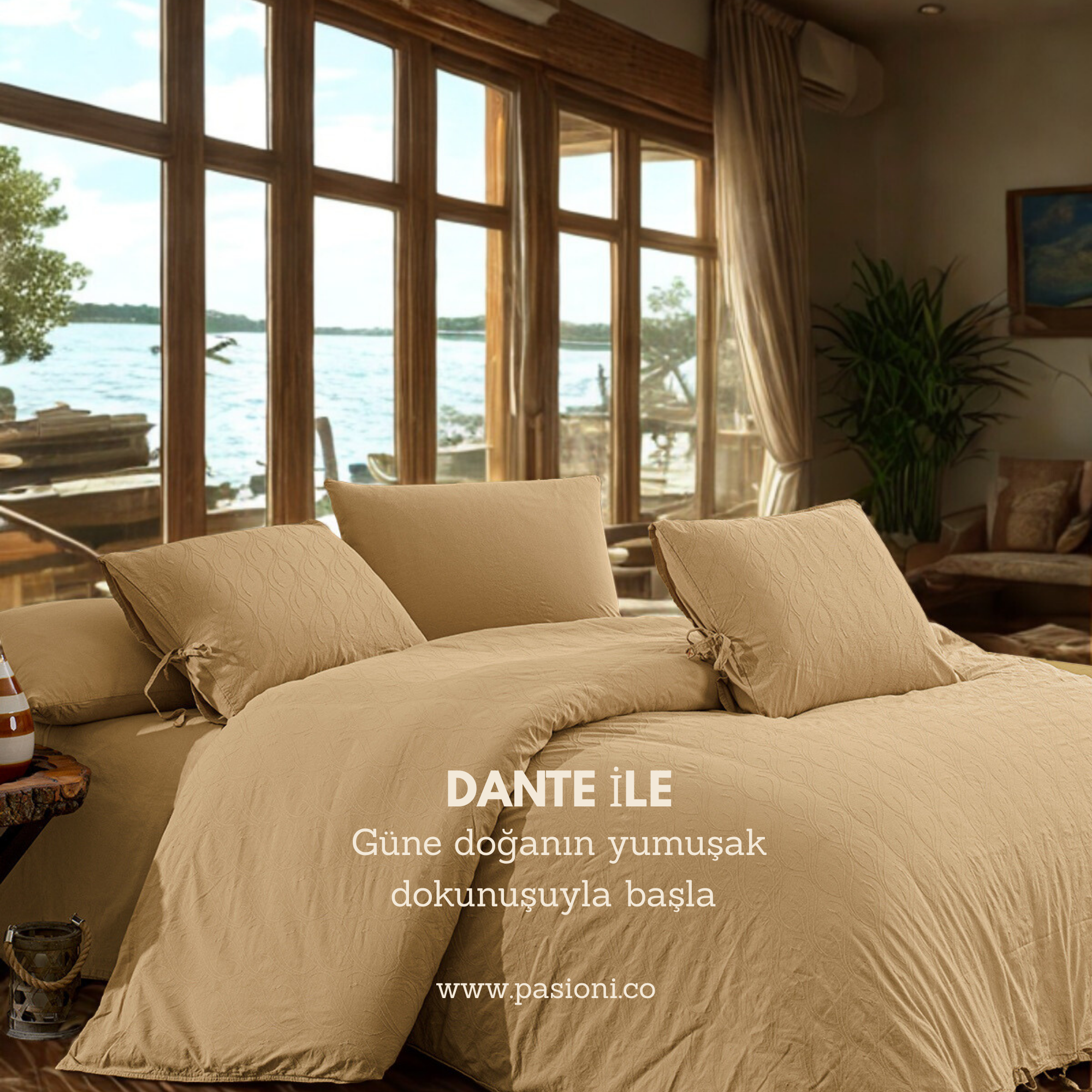 Dante Nakışlı %100 Pamuk Natürel Çift Kişilik Nevresim Takımı Almond