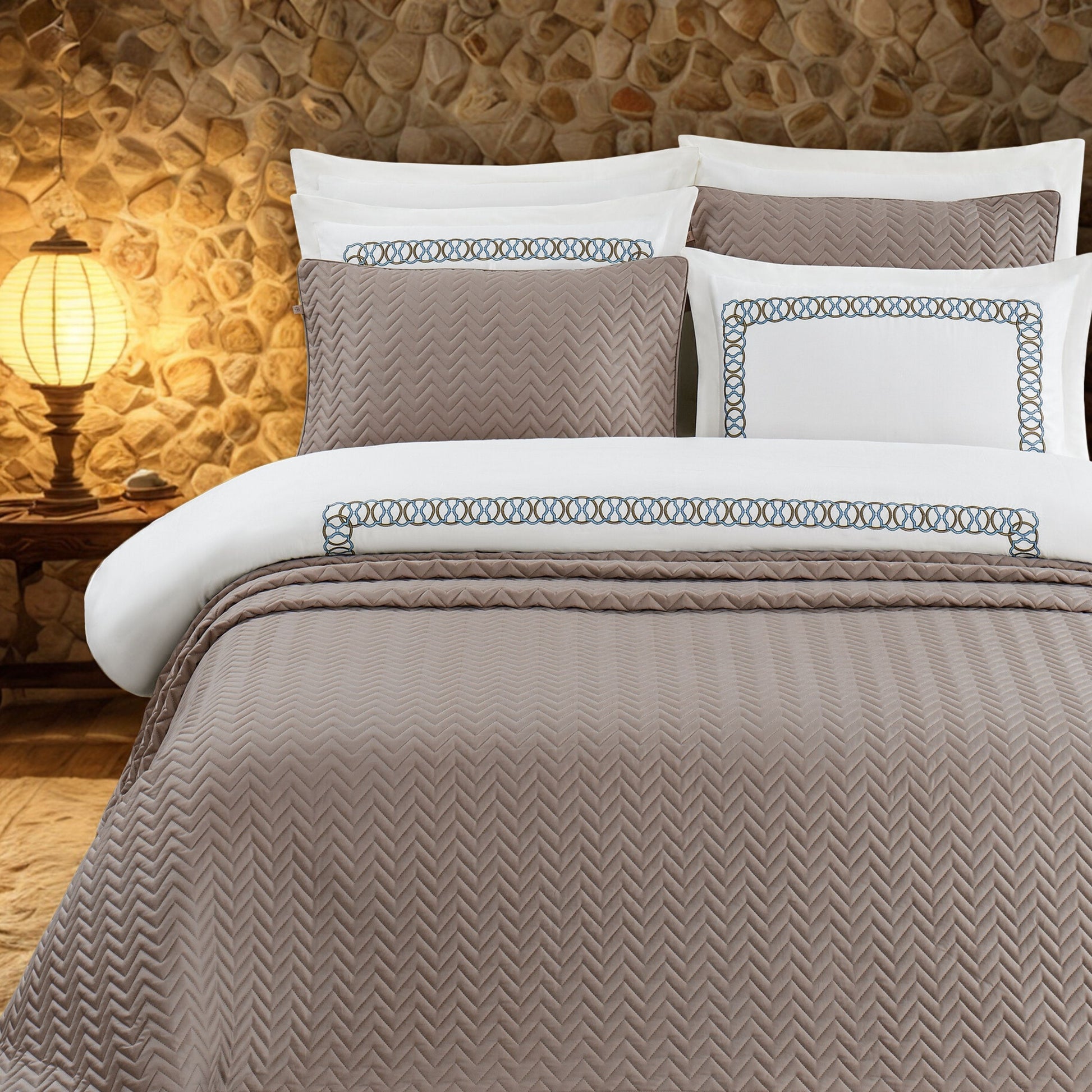 Pasioni Valentina %100 Pamuk Saten Yatak Örtüsü Seti Kahve